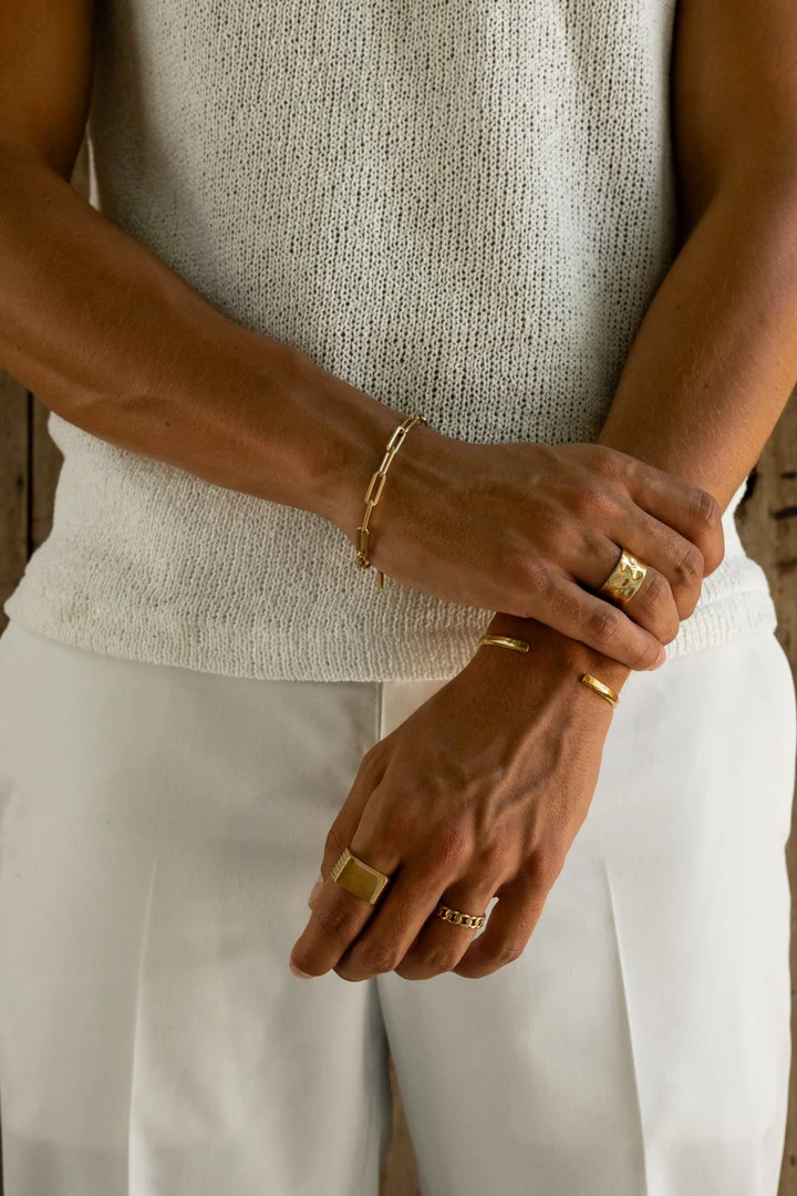 Step into elegance with the BOA BRACELET, a luxurious gold bracelet designed to make a statement. Its bold and contemporary design adds sophistication to any outfit, perfect for both everyday wear and special occasions.