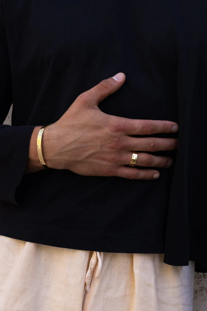 The HAMMERED RING 8MM by Cainte features a finely hammered surface that creates a unique, light-catching texture. Its 8mm band offers a stylish yet understated statement, perfect for daily wear or layering with other rings. Combining modern elegance with comfort, this ring is a versatile addition to any jewelry collection.