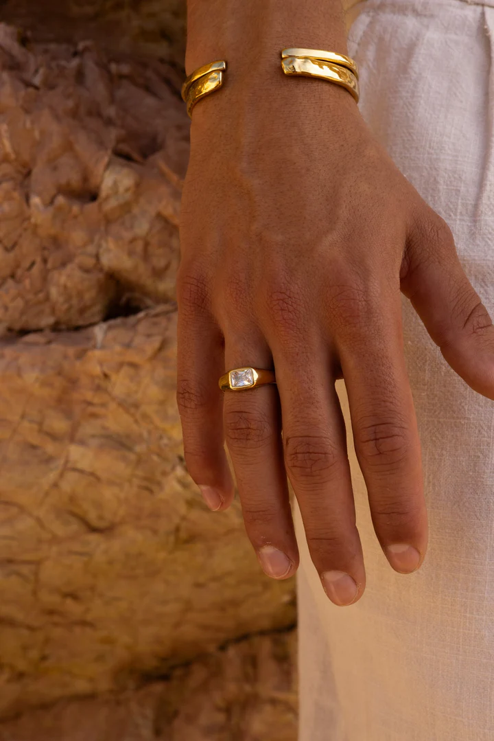 The NEBULA RING by Cainte brings cosmic charm to your jewelry collection. Featuring a polished gold finish and celestial-inspired design, this ring is perfect for everyday wear or special events. Lightweight, versatile, and durable, it adds sophistication and a touch of universal elegance to any outfit.
