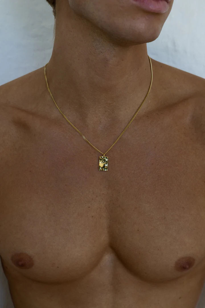 The PANEL Necklace by Cainte is a contemporary gold necklace featuring a distinctive panel-inspired design. Its polished finish and lightweight construction make it perfect for casual and formal outfits. Durable and stylish, this necklace is crafted to be a standout piece in any jewelry collection.