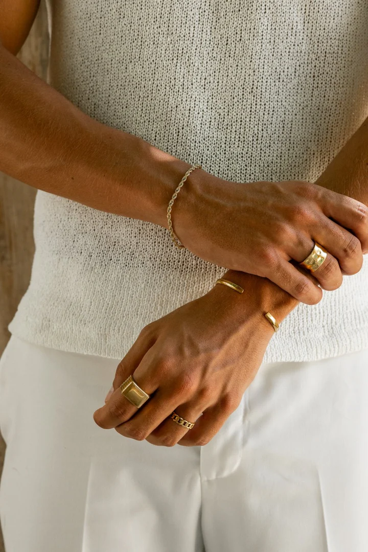 Elevate your style with the ROPE BRACELET 3MM, a sleek and versatile gold bracelet designed for everyday elegance. Its intricate rope design adds a refined touch, making it perfect for casual and formal occasions.