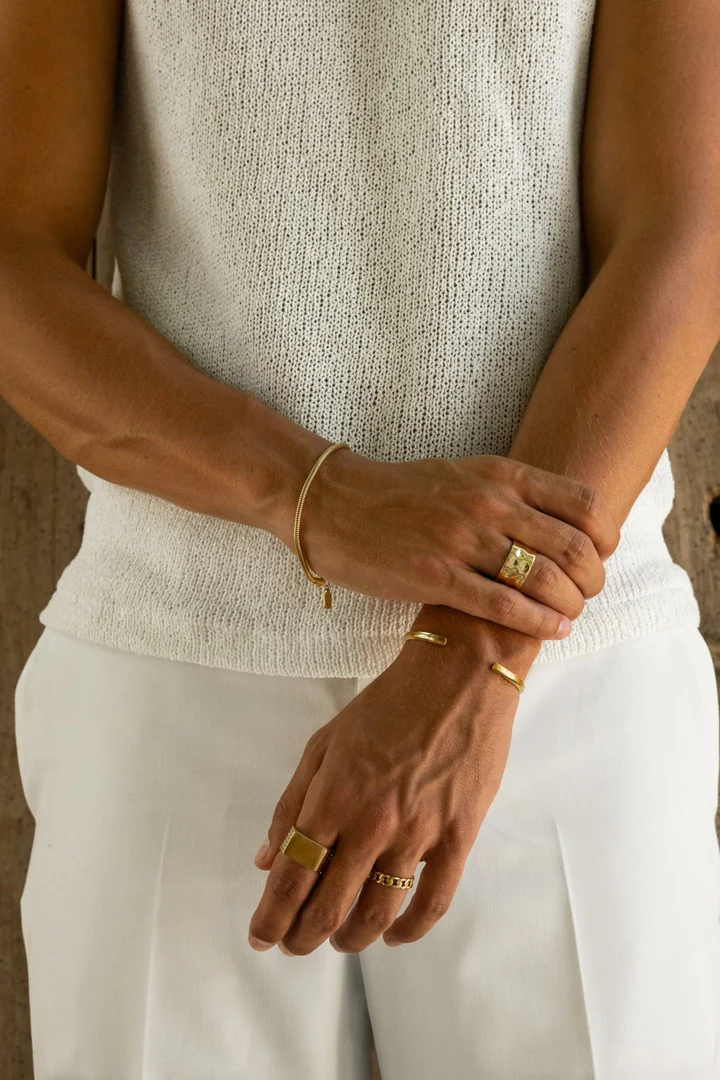 Elevate your style with the TROPEZ BRACELET, a luxurious gold bracelet designed for modern sophistication. Its sleek and elegant design makes it perfect for daily wear or special occasions, adding a subtle yet stylish statement to any outfit.